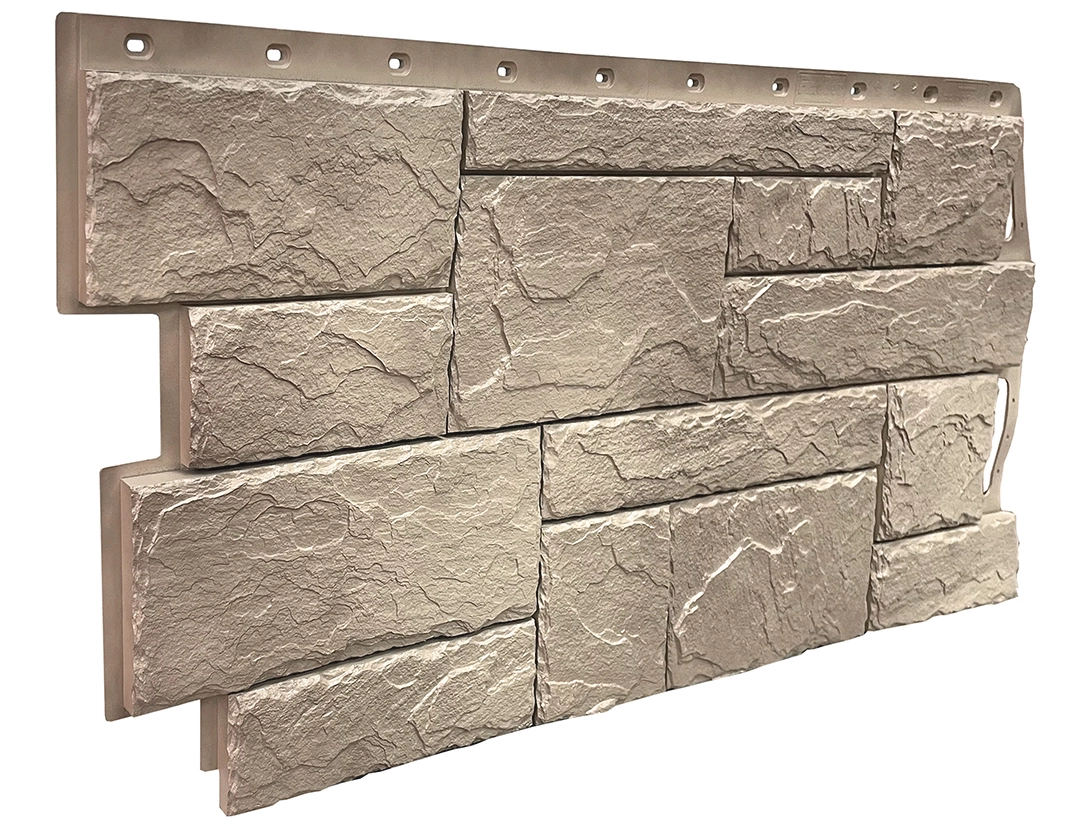 Преимущества: Идеально передает фактуру минимально обработанного, «грубого» камня с хаотичным рельефом. Панели создают эффект произвольной кладки, что идеально для стилей кантри, Прованс или эко.